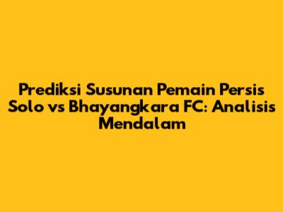 Prediksi susunan pemain Persis Solo vs Bhayangkara FC adalah hal yang menarik dan selalu dinantikan oleh para penggemar sepak bola. Dengan menganalisis performa terkini kedua tim, strategi pelatih, dan pemain kunci, kita bisa mendapatkan gambaran mengenai kemungkinan susunan pemain yang akan diturunkan. Namun, perlu diingat bahwa prediksi hanyalah prediksi, dan hasil pertandingan sesungguhnya bisa sangat berbeda.