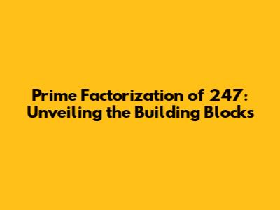 - Start with the smallest prime number: Begin by checking if 247 is divisible by the smallest prime number, which is 2. Since 247 is not an even number, it's not divisible by 2.