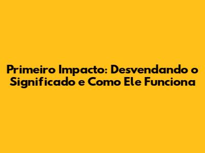 O Que é o Primeiro Impacto? Entendendo o Conceito