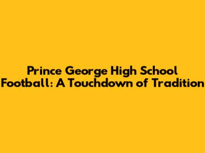 Hey guys, let's dive into the exciting world of Prince George High School football! This isn't just about touchdowns and tackles; it's about a community, a legacy, and the thrill of Friday night lights. We're going to explore what makes Prince George High School football so special, from its rich history to the impact it has on the students and the town. Ready to get into the game? Let's go!