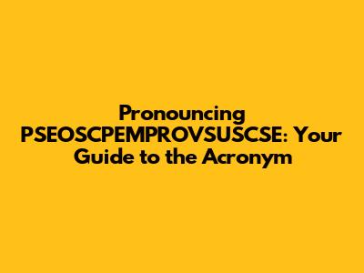 Hey guys! Ever stumble upon an acronym that looks like a total tongue-twister? Well, buckle up, because today we're tackling PSEOSCPEMPROVSUSCSE pronunciation! I know, I know, it looks intimidating, but trust me, we'll break it down piece by piece. This guide is all about helping you confidently say this acronym, understand its components, and maybe even impress your friends with your newfound knowledge. Let's get started, shall we?