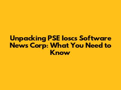 Hey everyone! Today, we're diving deep into a topic that might sound a bit technical at first glance, but trust me, it's super relevant if you're into the software and tech news scene, especially when it comes to the Philippine Stock Exchange (PSE). We're talking about PSE Ioscs Software News Corp. Now, that's a mouthful, right? Let's break it down and figure out what it all means for investors, tech enthusiasts, and anyone curious about the intersection of technology and business in the Philippines. We'll explore what 'Ioscs' might stand for, why it's linked to software, and how 'News Corp' fits into the picture. Get ready for some serious insights, guys!