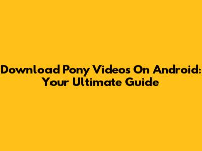 Download Pony Videos On Android: Your Ultimate Guide