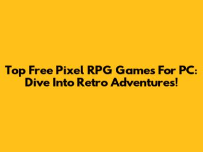 Top Free Pixel RPG Games For PC: Dive Into Retro Adventures!