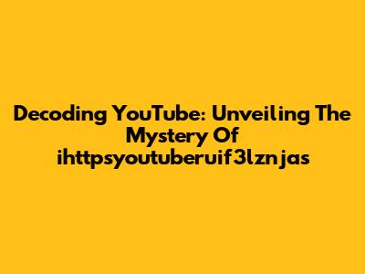 Decoding YouTube: Unveiling The Mystery Of 'ihttpsyoutuberuif3lznjas'