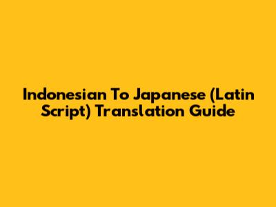 Indonesian To Japanese (Latin Script) Translation Guide