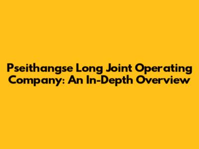 Let's dive deep into the world of the Pseithangse Long Joint Operating Company (JOC). In this article, we will explore everything you need to know about this entity. What it is, what it does, and why it matters.