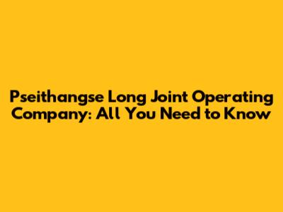 Deep Dive into Pseithangse Long Joint Operating Company
