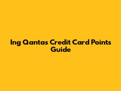 Ing Qantas Credit Card Points Guide
