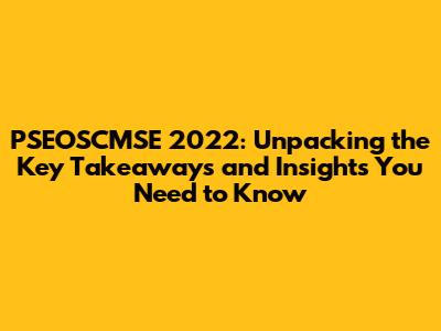 Conclusion: The Lasting Legacy of PSEOSCMSE 2022