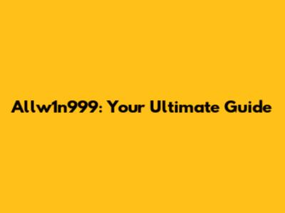 Allw1n999: Your Ultimate Guide