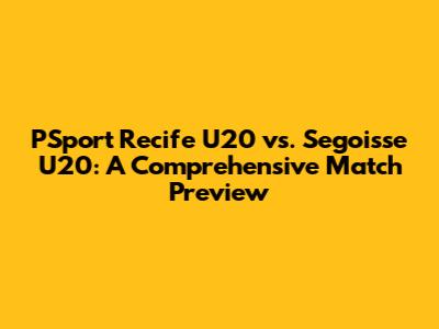 Hey sports fanatics! Let's dive deep into the upcoming match between PSport Recife U20 and Segoisse U20. This is going to be a fun one, so buckle up! We're gonna break down everything from team stats to potential game strategies, and even throw in some predictions. So, whether you're a seasoned bettor or just a casual fan, this analysis is for you. Get ready for a thrilling ride filled with insights and a whole lot of soccer talk!