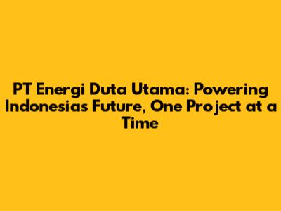 Hey guys, let's dive into the world of PT Energi Duta Utama, a name that's becoming increasingly significant in Indonesia's dynamic energy sector. If you're even remotely interested in how the lights stay on, how industries hum, or how renewable energy is shaping our future, then you're in the right place. We're going to unpack what makes this company tick, explore its impact, and maybe even get a glimpse of what's next for this energy powerhouse. So, grab your coffee, settle in, and let's get started on understanding the vital role PT Energi Duta Utama plays in powering up Indonesia.