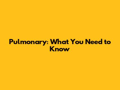 Pulmonary: What You Need to Know