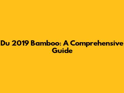 Du 2019 Bamboo: A Comprehensive Guide