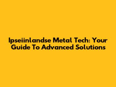 Ipseiinlandse Metal Tech: Your Guide To Advanced Solutions