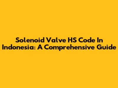 Solenoid Valve HS Code In Indonesia: A Comprehensive Guide