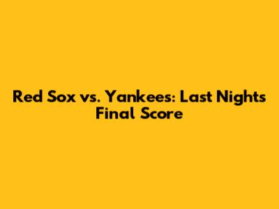Alright, guys, let's cut right to the chase: The final score of the Red Sox versus Yankees game last night was [Insert Final Score Here]. Before we get into the nitty-gritty of how the game unfolded, let's acknowledge that every game between these two teams is a battle. It's not just about the win; it's about bragging rights, the historical context, and the sheer competitive spirit. The energy around a Red Sox–Yankees matchup is unlike any other in baseball. The fans bring it, the players feel it, and the stakes always seem a little higher. This particular game was no exception. It was a back-and-forth affair, filled with clutch hits, nail-biting pitching, and maybe a few questionable calls (we've all been there, right?). The atmosphere was electric, with every play drawing a reaction from the crowd, and every swing of the bat carrying the weight of the rivalry. The players themselves often elevate their game when these two teams meet, knowing that a strong performance can etch their names into the memories of fans for years to come. This game also highlighted some of the key players on both teams. The game showcased some of the younger players who are trying to make a name for themselves in the league. It provided a glimpse into the future of these franchises and which players would become stars. So, the final score, while important, is only a snapshot of the larger story – a story of rivalry, competition, and the enduring love of the game. Now, let's explore some of the key moments that shaped the outcome.