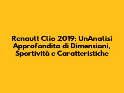 Ciao a tutti, appassionati di auto! Siete pronti a immergervi nel mondo della Renault Clio 2019? Questo articolo è dedicato a tutti voi che siete curiosi di scoprire ogni dettaglio di questo modello iconico. Esploreremo insieme le dimensioni, l'anima sportiva e tutte le caratteristiche che rendono la Clio 2019 un'auto così apprezzata. Che siate alla ricerca di informazioni per un acquisto, o semplicemente amanti del mondo dei motori, qui troverete tutto ciò che vi serve. Quindi, allacciate le cinture e preparatevi a un viaggio entusiasmante nel cuore della Clio 2019!