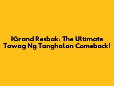 IGrand Resbak: The Ultimate Tawag Ng Tanghalan Comeback!