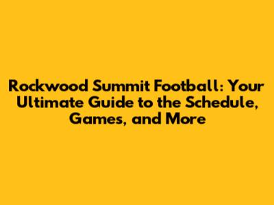 Rockwood Summit Football Schedule: What You Need to Know
