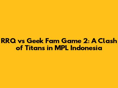 Hey guys, let's dive into the electrifying MPL Indonesia scene and break down the second game between RRQ and Geek Fam! This matchup is always a banger, and Game 2 was no exception. We're talking about high-level play, nail-biting moments, and enough action to keep you on the edge of your seat. So, buckle up, grab your snacks, and let's get into the nitty-gritty of this epic clash. We'll explore the strategies, the hero picks, the crucial team fights, and everything in between that made this game a must-watch for any Mobile Legends: Bang Bang fan. This game showcased the best of Indonesian Mobile Legends, with both teams bringing their A-game. The rivalry between RRQ and Geek Fam has always been intense, and this game was a testament to that, with both teams eager to prove their dominance in the MPL Indonesia. The stakes were high, and the players knew it, resulting in a display of skill, strategy, and sheer determination. This game was a microcosm of what makes MPL Indonesia so exciting: the constant push and pull, the unexpected twists, and the raw passion that the players bring to the arena. It was a game that had everything a fan could ask for, solidifying the status of RRQ and Geek Fam as top contenders in the league. Let's delve into the specifics, shall we?