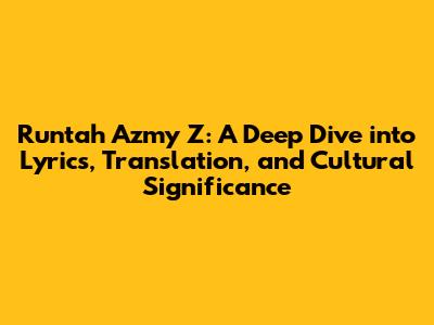 Hey everyone! Ever heard of "Runtah" by Azmy Z? If you're a fan of Indonesian music, or even just starting to explore it, chances are it's on your radar. This song is a banger! In this article, we're going to dive deep into the world of "Runtah," exploring the lyrics, providing a translation for those who might not speak Indonesian, and, most importantly, discussing the cultural context that gives this song its true power. So, grab your headphones, get comfy, and let's get started!