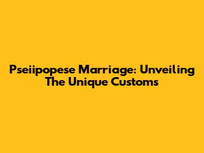 Pseiipopese Marriage: Unveiling The Unique Customs