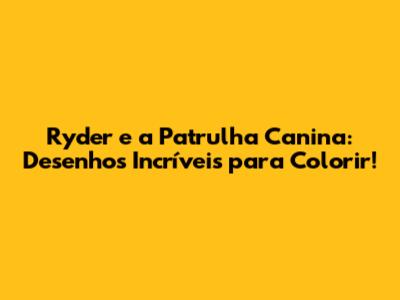Olá, pessoal! Se você está procurando por desenhos para colorir do Ryder e da Patrulha Canina, você veio ao lugar certo! Prepare seus lápis de cor, canetinhas e giz de cera, porque vamos mergulhar no mundo emocionante da Patrulha Canina e de seus heróis caninos. Neste artigo, vamos explorar a empolgante aventura de colorir com o Ryder e sua equipe, além de dicas e ideias criativas para tornar essa experiência ainda mais divertida. Vamos lá?