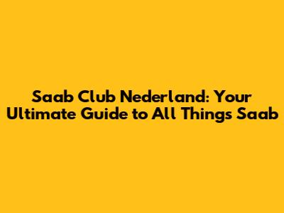 What is Saab Club Nederland? Unveiling the Heart of the Saab Community