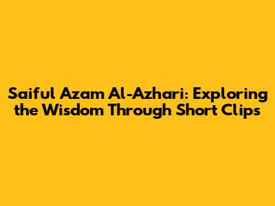 Hey guys! Let's dive into the world of Saiful Azam Al-Azhari, a name that resonates deeply in Islamic scholarship. We're going to explore his wisdom through short clips. This article is your go-to guide for understanding his teachings, life, and the impact he has had. We'll explore his life, teachings, and significance. Imagine it like this – we're unpacking the treasures of his knowledge, one short clip at a time. The goal? To offer you a clear, engaging, and insightful journey into the heart of Saiful Azam Al-Azhari's world. Ready to start? Let's go!