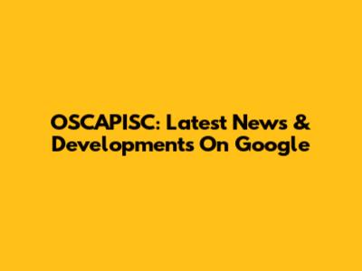 OSCAPISC: Latest News & Developments On Google