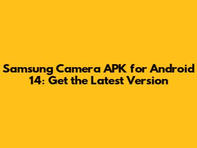 Hey guys! Are you looking to get the most out of your Android 14 device's camera? One of the best ways to do that is by ensuring you have the latest Samsung Camera APK. In this article, we'll dive deep into everything you need to know about getting the Samsung Camera APK for Android 14, why it’s important, and how to make sure it’s running smoothly. So, let's jump right in!