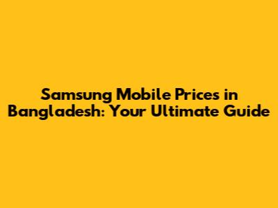 Decoding Samsung Mobile Prices in Bangladesh