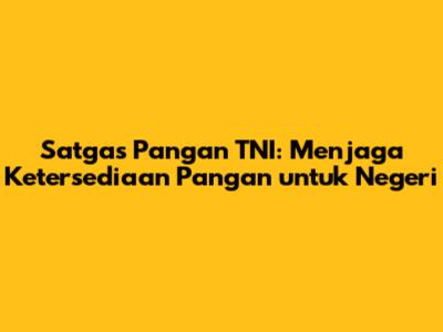 Menjaga Keamanan dan Ketahanan Pangan Nasional Secara keseluruhan, keberadaan Satgas Pangan TNI berkontribusi besar dalam menjaga keamanan dan ketahanan pangan nasional. Pangan adalah salah satu elemen fundamental dalam sebuah negara. Jika pangan aman, maka stabilitas sosial dan politik pun akan terjaga. Ketahanan pangan adalah fondasi kedaulatan bangsa.