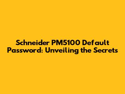 Unveiling the Schneider PM5100 Default Password: What You Need to Know