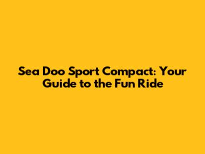 Hey guys! Ever heard of the Sea Doo Sport Compact? If you're into personal watercraft (PWC) and looking for a ride that's both fun and easy to handle, you're in the right place. Let's dive into what makes the Sea Doo Sport Compact a fantastic choice for water enthusiasts.