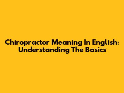 Chiropractor Meaning In English: Understanding The Basics