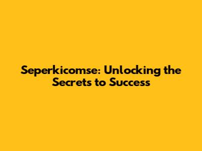 Seperkicomse: Unlocking the Secrets to Success