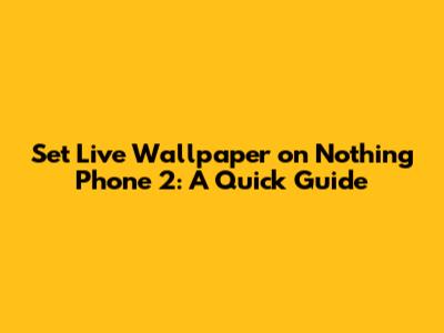Hey guys! Want to spice up your Nothing Phone 2 with a cool, dynamic background? Setting a live wallpaper is a fantastic way to personalize your phone and make it stand out. It might sound intimidating, but trust me, it's super easy. This guide will walk you through everything you need to know to get those awesome moving wallpapers on your Nothing Phone 2.