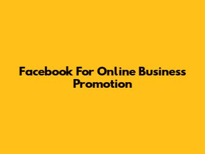 Facebook For Online Business Promotion