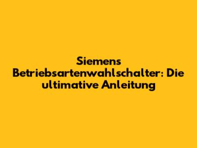 Die Vielfalt der Siemens Betriebsartenwahlschalter: Finde den Richtigen für dich
