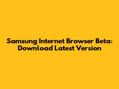 Samsung Internet Browser Beta: Download Latest Version