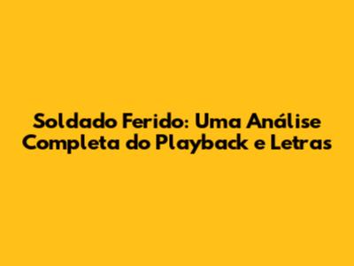 Soldado Ferido é mais do que apenas uma música; é uma experiência emocional que ressoa com muitos ouvintes. A versão playback, especialmente quando legendada, abre um mundo de possibilidades para quem deseja cantar e se conectar com a canção de uma maneira mais profunda. Neste artigo, vamos mergulhar no universo de "Soldado Ferido", explorando o significado da música, a importância do playback e como a legenda pode transformar a sua experiência.
