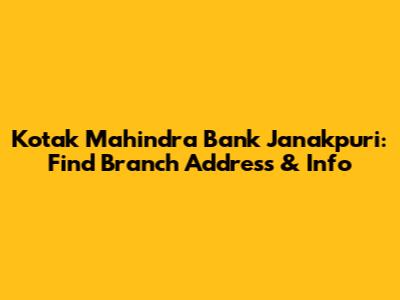 Kotak Mahindra Bank Janakpuri: Find Branch Address & Info