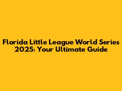 Florida Little League World Series 2025: Your Ultimate Guide