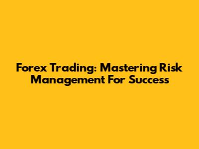 Forex Trading: Mastering Risk Management For Success