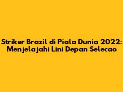 - Siapa striker utama Brazil di Piala Dunia 2022? Neymar Jr. kemungkinan besar akan menjadi pemain kunci di lini depan, namun pilihan lainnya akan bergantung pada performa dan kebutuhan taktis.