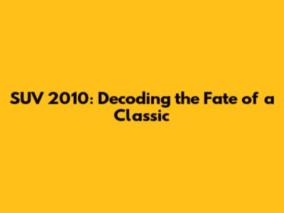 The Legacy of the 2010 SUV: Where Are They Now?