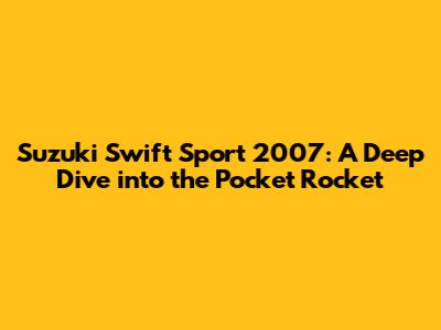 Is the Suzuki Swift Sport 2007 Right for You?